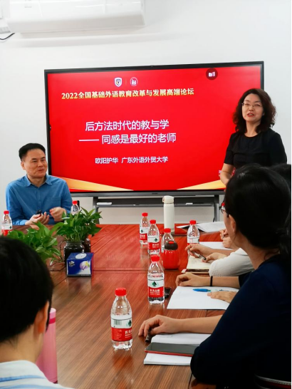 本网讯 10月20日下午14时30分,vwin德赢AC米兰官网在第一教学楼北楼446室召开2022年全国基础外语教育改革与发展高端论坛,探讨后方法时代的教与学,即“双减”形势下,教师如何运用人本主义心理学的同感、共鸣、引领原则为学生量身定制学习方法。此次讲座由vwin德赢AC米兰官网教授、博士生导师欧阳护华主讲,vwin德赢AC米兰官网丁凤教授主持。学校教师代表,及我院相关人员、部分研究生代表参加了此次论坛。