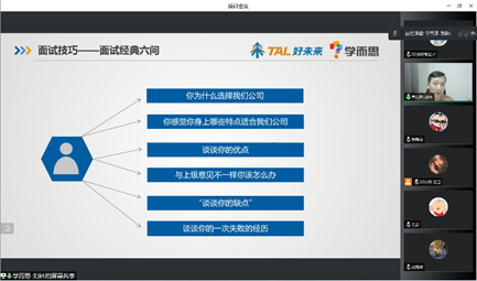 除此以外,四位嘉宾分别通过个人求职经验为大家进行了分享。广州学而思教学负责人嘉宾刘林指出就业是双向选择,鼓励同学们积极追求自己的热爱并为之努力奋斗;现就职于北京科锐国际人力资源股份有限公司的嘉宾袁敏瑜以个人跨行业实习经历为例,鼓励各位同学不断探索自我兴趣与能力,并带来了求职过程中的笔试经验分享;就职于realme公司的嘉宾唐筠林推荐了一些常用的制作简历网址与求职途径,并提醒同学们应在面试结束后积极复盘并调整情绪;现任阿里巴巴全球速卖通前端开发工程师一职的嘉宾刘海峰指出面试前应从当前形势、就业考虑、就业方向等多方面考虑个人就业规划。