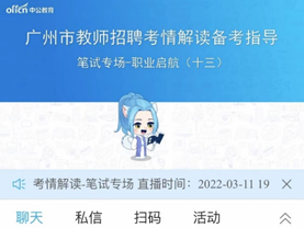 会上,陈虹老师首先为大家进行了面向广东地区的教招笔试考情分析,重点关注广州各区。针对备考教师招聘笔试考试,包括教育综合、学科知识等科目,陈虹老师对单选题、多选题及判断题进行了详细讲解,具体介绍了每一种题型的主要考查方式,并以真题为例分析考试关键得分点,为大家进行高频知识点的链接性串讲。同时,老师在线上和同学们一起做题互动,干货满满。