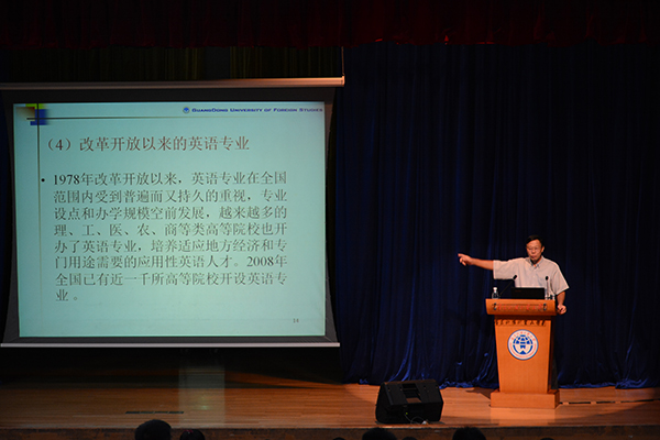 随后,陈建平和同学们一起回顾了英语专业在中国的发展历程,并且介绍了国际上一些著名学府的英语专业教育特点,并指出当今国际社会需要的是“bilingual(双语的)and bicultural(二元文化的)”的高素质人才,而我国英语专业需要培养的也正是这样的高水平人才。