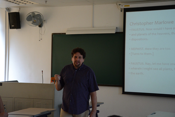 本网讯 6月24号下午2时,主题为“小说中的科学和科学中的虚幻”英文文学讲座在七教422举行,主讲人为新加坡南洋理工大学的DanielJernigan教授,讲座由郑杰老师主持,出席嘉宾有部分老师和学生。