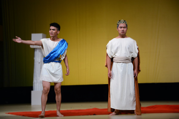 本网讯 5月28日下午2时,vwin德赢AC米兰官网第十七届戏剧大赛第二次彩排在云山会堂进行。外教Duncan,英美文学系主任刘胡敏等指导老师到场观看了表演,并为各剧组提供了宝贵的指导意见。 当天中午,各剧组成员及工作人员早早地来到云山会堂布置现场。在他们的通力协作下,道具搬运、灯光调试、音效测控、演员化妆等一系列工作得以有条不紊地开展。一切准备就绪后,四大剧组按比赛流程进行正式彩排。 第一个剧目《安提戈涅》改编自...
